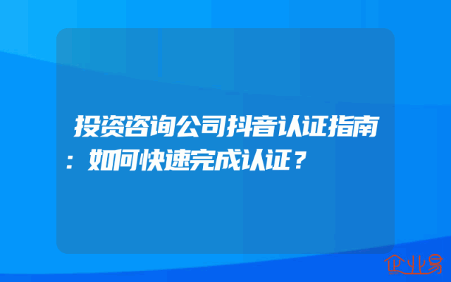 - 投资咨询公司抖音认证指南:如何快速完成认证?