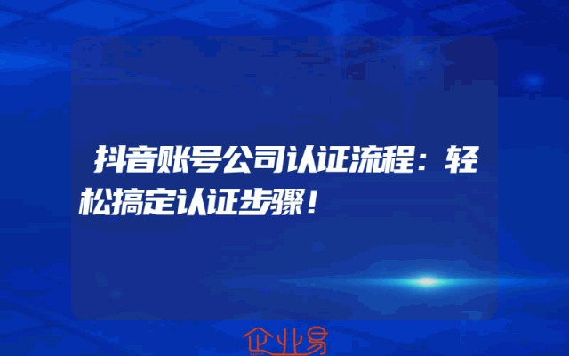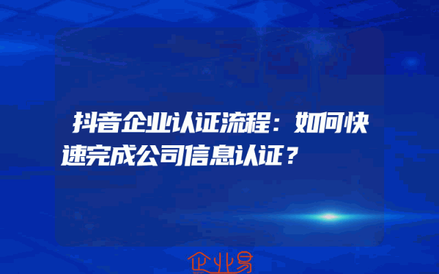 - 抖音企业认证流程:如何快速完成公司信息认证?
