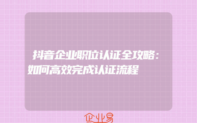 - 抖音企业职位认证全攻略:如何高效完成认证流程