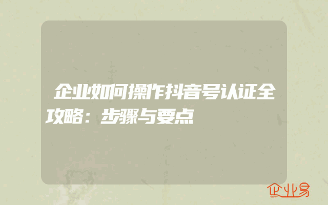 - 企业如何操作抖音号认证全攻略:步骤与要点