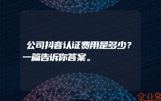 - 公司抖音认证费用是多少?一篇告诉你答案。