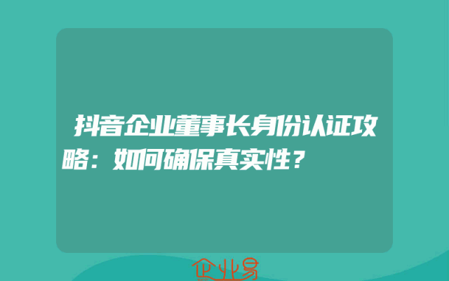 - 抖音企业董事长身份认证攻略:如何确保真实性?