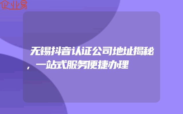 - 无锡抖音认证公司地址揭秘,一站式服务便捷办理
