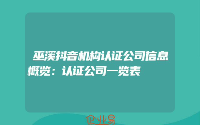 - 巫溪抖音机构认证公司信息概览:认证公司一览表