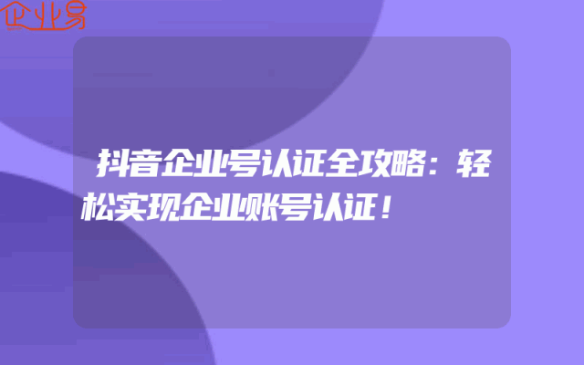 - 抖音企业号认证全攻略:轻松实现企业账号认证!