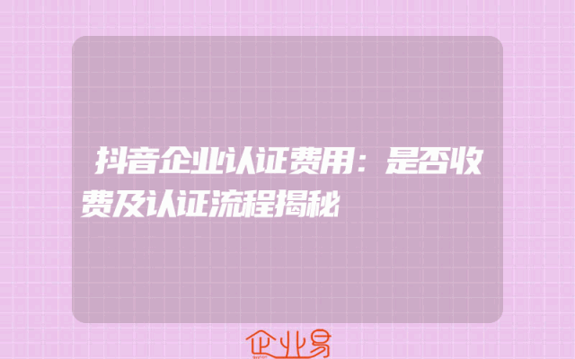 - 抖音企业认证费用解析:是否收费及认证流程揭秘一、抖音企业认证是否收费抖音企业认证是需要支付一定费用的。根据抖音官方的规定,企业认证需要缴纳审核服务费,这是一个确保企业信息真实可靠、提升品牌形象的重要步