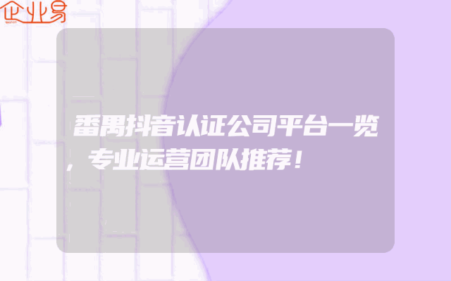 - 番禺抖音认证公司平台一览,专业运营团队推荐!