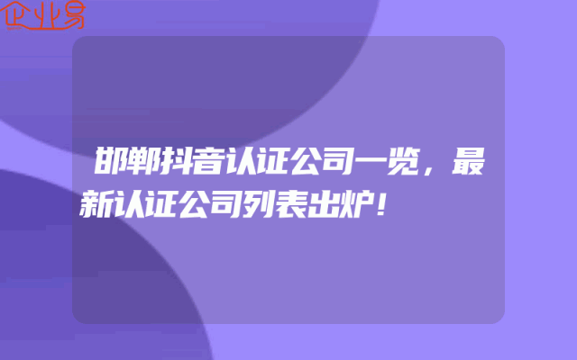 - 邯郸抖音认证公司一览,最新认证公司列表出炉!
