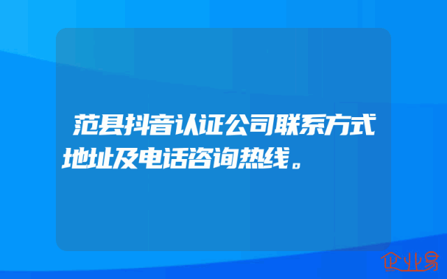 - 范县抖音认证公司联系方式地址及电话咨询热线。