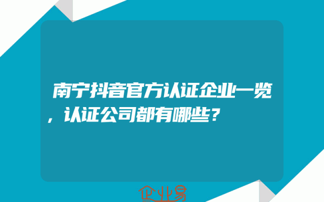- 南宁抖音官方认证企业一览,认证公司都有哪些?