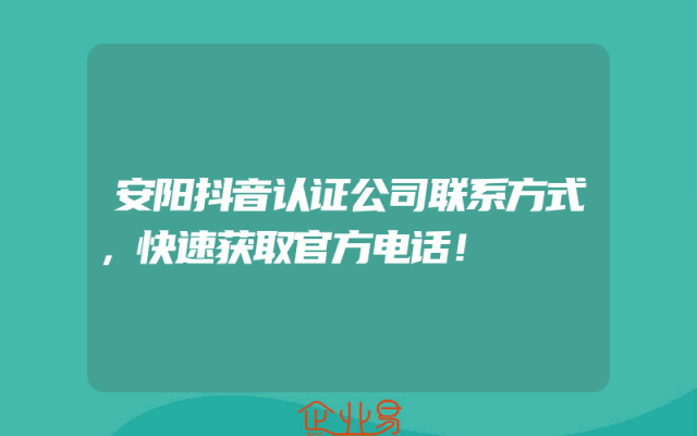 - 安阳抖音认证公司联系方式,快速获取官方电话!