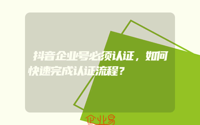 - 抖音企业号必须认证,如何快速完成认证流程?