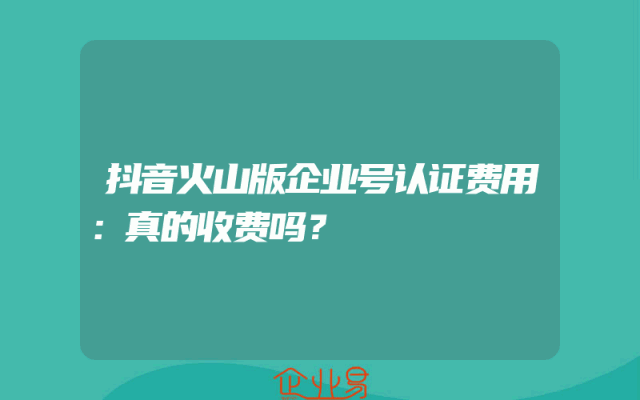 - 抖音火山版企业号认证费用解析:真的收费吗?一、抖音火山版企业号概述随着移动互联网的普及,抖音火山版作为一款流行的短视频社交平台,吸引了众多企业和个人用户的关注。企业号作为平台内的一种特殊账号类型,拥有更多的功能和权益,有助于企业开展品牌推广