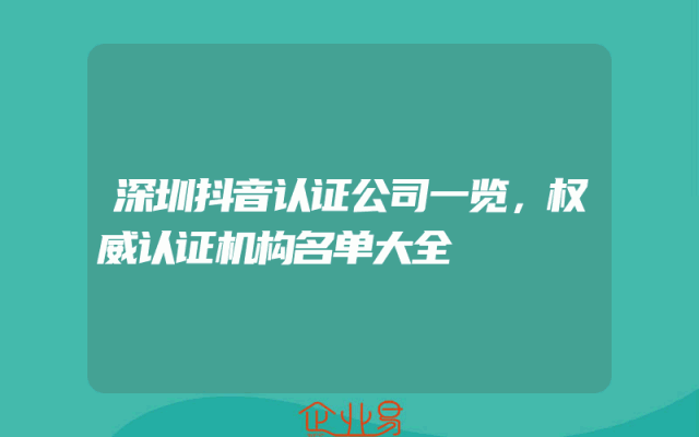 - 深圳抖音认证公司一览,权威认证机构名单大全