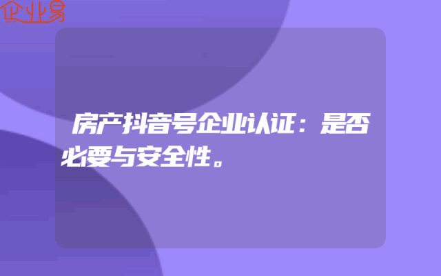- 房产抖音号企业认证:是否必要与安全性解析一、企业认证的概述随着互联网的普及和社交媒体的兴起,抖音已成为大众获取信息的重要途径之一。对于房产行业而言,开设抖音账号并进行企业认证,有助于提升品牌形象、扩大市场影响力。那么,房产抖音号企业认证是否