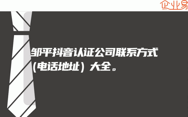 - 邹平抖音认证公司联系方式(电话地址)大全。