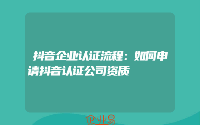 - 抖音企业认证流程:如何申请抖音认证公司资质