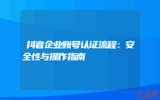 - 抖音企业账号认证流程解析:安全性与操作指南一、引言随着互联网+时代的到来,企业在抖音平台开设官方账号,已经成为品牌营销的新趋势。抖音企业账号认证不仅有助于提升品牌形象,还能增加用户信任度。本文将详细解析抖音企业账号的认证流程,并探讨其安全性