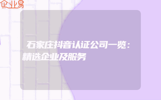 - 石家庄抖音认证公司一览:精选企业及服务解析一、抖音认证公司概述随着抖音平台的迅速崛起,越来越多的企业选择在石家庄成立抖音认证公司,以提供专业的服务和支持。这些公司不仅拥有专业的团队和技术,还能够根据客户需求提供定制化的解决方案。它们致力于帮