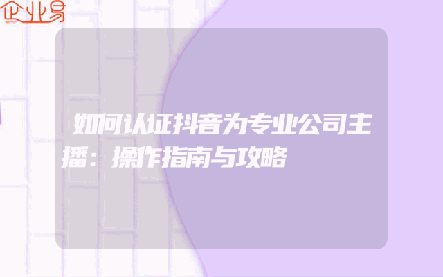 - 如何认证抖音为专业公司主播:操作指南与攻略