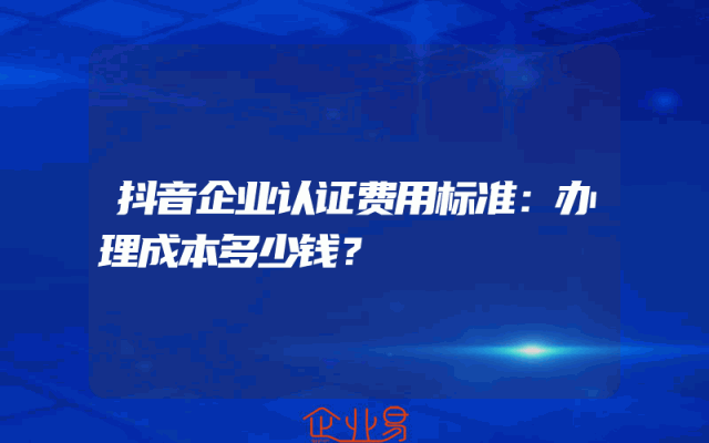 - 抖音企业认证费用标准:办理成本多少钱?
