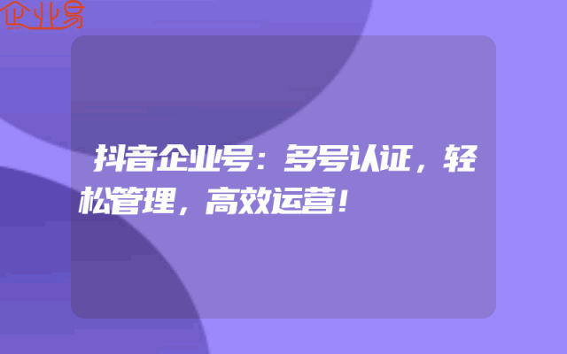 - 抖音企业号:多号认证,轻松管理,高效运营!