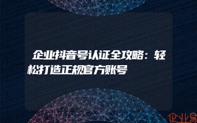- 抖音企业号认证必备双证,轻松了解认证流程一、抖音企业号认证的重要性随着互联网的发展,抖音作为一款流行的短视频平台,吸引了众多企业和个人用户的加入。为了在抖音上更好地推广自己的品牌或产品,进行企业号认证