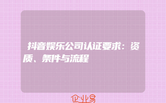 - 抖音娱乐公司认证要求:资质、条件与流程