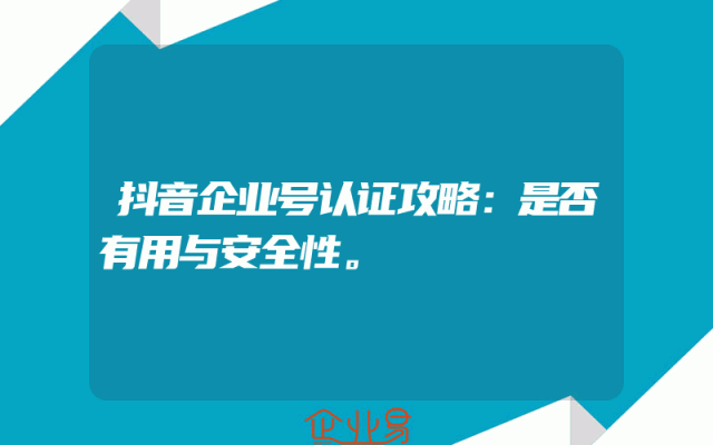 - 抖音企业号认证攻略:是否有用与安全性解析一、抖音企业号认证的重要性在当今数字化时代,社交媒体已成为企业推广品牌、吸引用户的重要渠道。抖音作为一款领先的短视频社交平台,拥有庞大的用户群体。而抖音企业号认证,对于提升企业的品牌曝光度、增强用户信