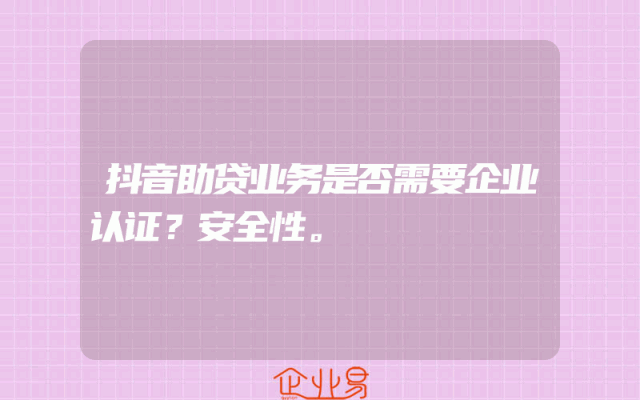 - 抖音助贷业务是否需要企业认证?安全性解析一、抖音助贷业务概述抖音作为一个社交媒体巨头,近年来不断拓宽其业务范围,其中包括助贷业务。助贷业务对于企业和个人而言,提供了便捷的贷款服务,但同时也带来了一系列关于认证和安全性的问题。二、企业认证的重