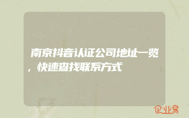 - 南京抖音认证公司地址一览,快速查找联系方式
