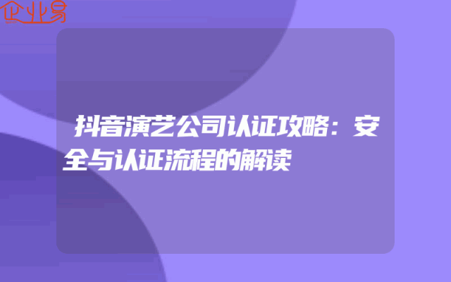 - 抖音演艺公司认证攻略:安全与认证流程的解读