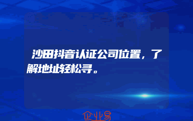 - 沙田抖音认证公司位置,了解地址轻松寻。