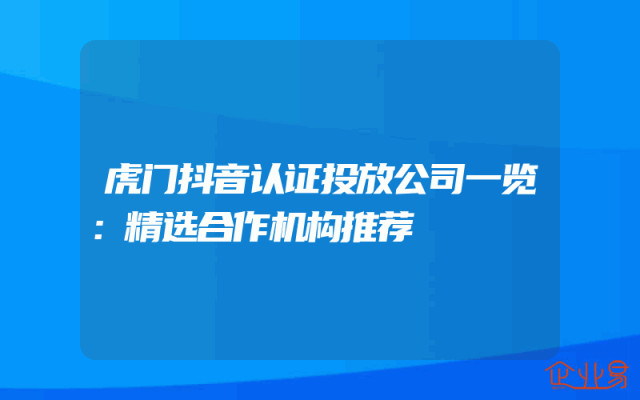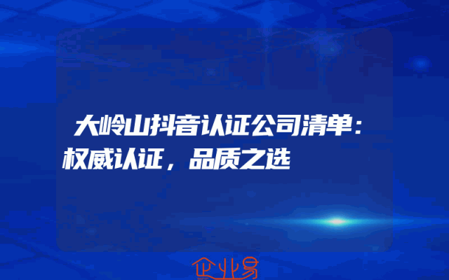 - 抖音官方认证企业名单:权威认证公司有哪些?