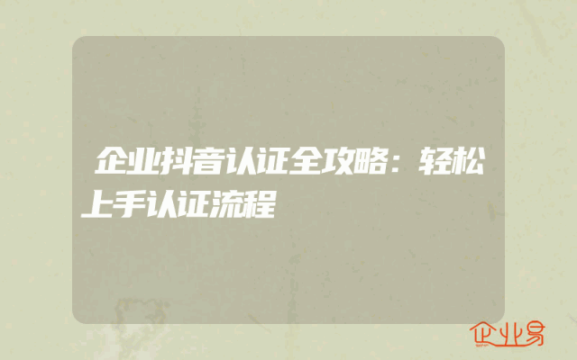 - 企业抖音认证全攻略:轻松上手认证流程