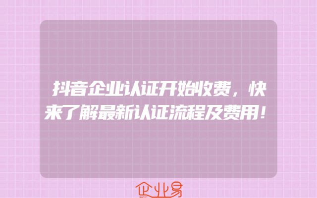 - 抖音企业认证开始收费,快来了解最新认证流程及费用!