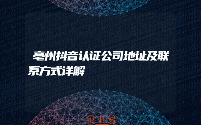 - 亳州抖音认证公司地址及联系方式详解
