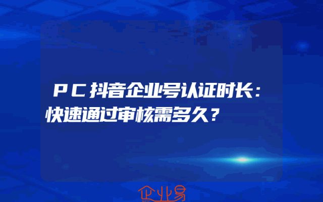 - PC抖音企业号认证时长:快速通过审核需多久?