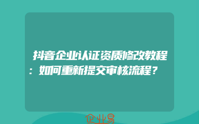 - 抖音企业认证资质修改教程:如何重新提交审核流程?