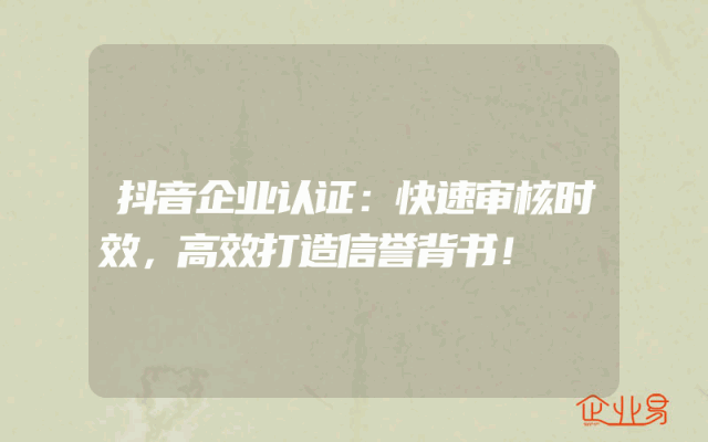- 抖音企业认证:快速审核时效,高效打造信誉背书!