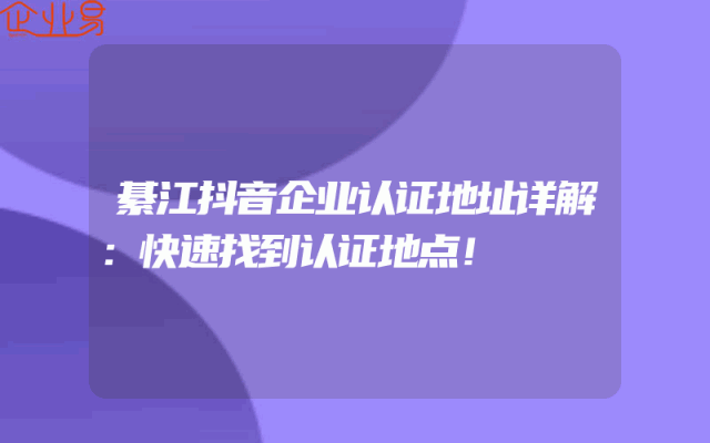 - 綦江抖音企业认证地址详解:快速找到认证地点!