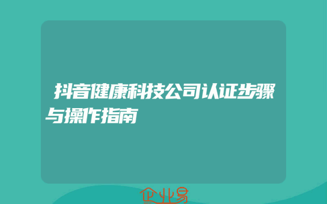 - 抖音健康科技公司认证步骤与操作指南随着社交媒体和互联网的快速发展,健康科技领域的抖音公司正受到越来越多的关注。为了在抖音平台上获得更多曝光和业务机会,许多健康科技公司都选择进行抖音官方认证。以下是抖音健康科技公司认证的步骤与操作指南,旨在帮