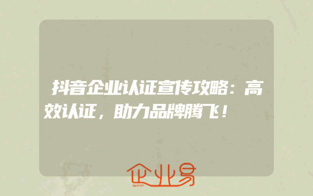 - 抖音企业认证宣传攻略:高效认证,助力品牌腾飞!