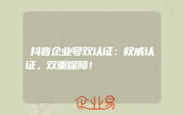 - 抖音企业号双认证:权威认证,双重保障!一、抖音企业号双认证的概念在当今数字化时代,社交媒体成为了企业宣传、品牌建设的重要渠道。抖音作为一款领先的短视频社交平台,吸引了大量用户的关注。抖音企业号双认证,即在抖音平台上对企业进行官方认证与信誉认
