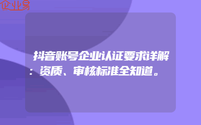 - 抖音账号企业认证要求详解:资质、审核标准全知道。