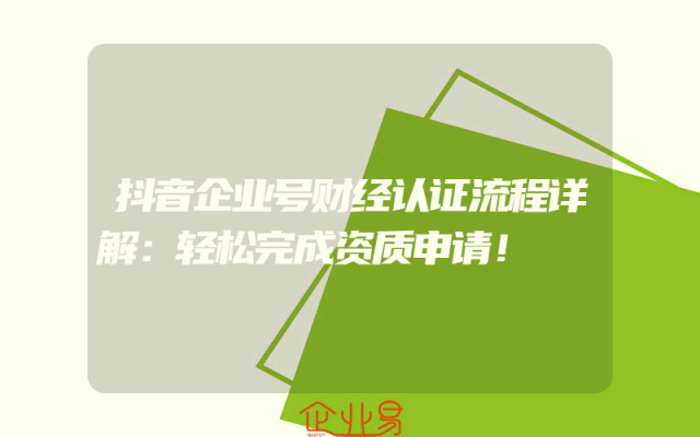 - 抖音企业号财经认证流程详解:轻松完成资质申请!