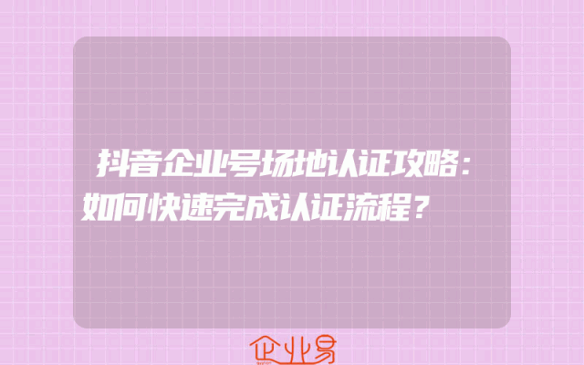 - 抖音企业号场地认证攻略:如何快速完成认证流程?