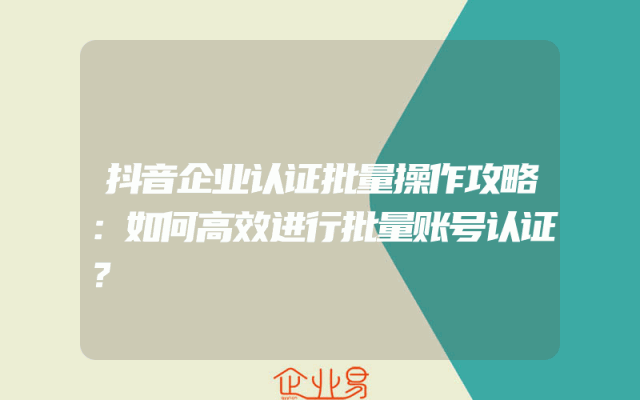 - 抖音企业认证批量操作攻略:如何高效进行批量账号认证?