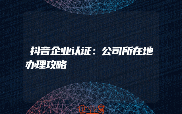 - 抖音企业认证:公司所在地办理攻略一、了解抖音企业认证的重要性随着移动互联网的迅猛发展,抖音作为新兴的社交媒体平台,吸引了众多企业和商家的关注。在这个巨大的流量池中,企业认证成为吸引粉丝、建立品牌信誉的重要步骤。通过企业认证,企业可以展示自己