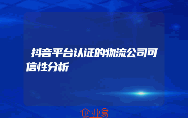 - 抖音平台认证的物流公司可信性分析一、抖音平台认证背景介绍随着电子商务的飞速发展,物流行业也在不断扩大。抖音平台作为一个拥有数亿用户的社交媒体平台,对于物流公司的认证,是对其服务质量和信誉的一种保障。这种认证机制能够帮助用户筛选出值得信任的物